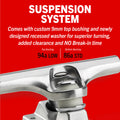 • Durable Hand-poured 96a urethane pivot bushings for better response.