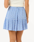 The San Carlos Mini Skirt offers relaxed charm. With soft-washed Lenzing™ Ecovero™ crinkle, it features an elastic waist with a drawcord, a breezy print, and a metal logo trim.